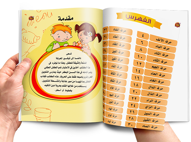 يتميز كتاب الحروف العربية بوجود الحـــرف كبير بالاضافة الى مدلــــول بحجم كبيـــــــر