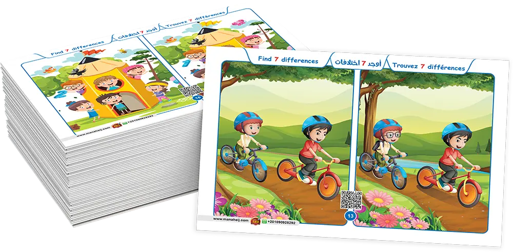 أوجد الإختلافات : هي مجموعة بطاقات تفاعلية لتنمية مهارات الطفل والذكاء البصري ومهارات الملاحظة عبر انشطة تفاعلية وتمرينات ممتازة