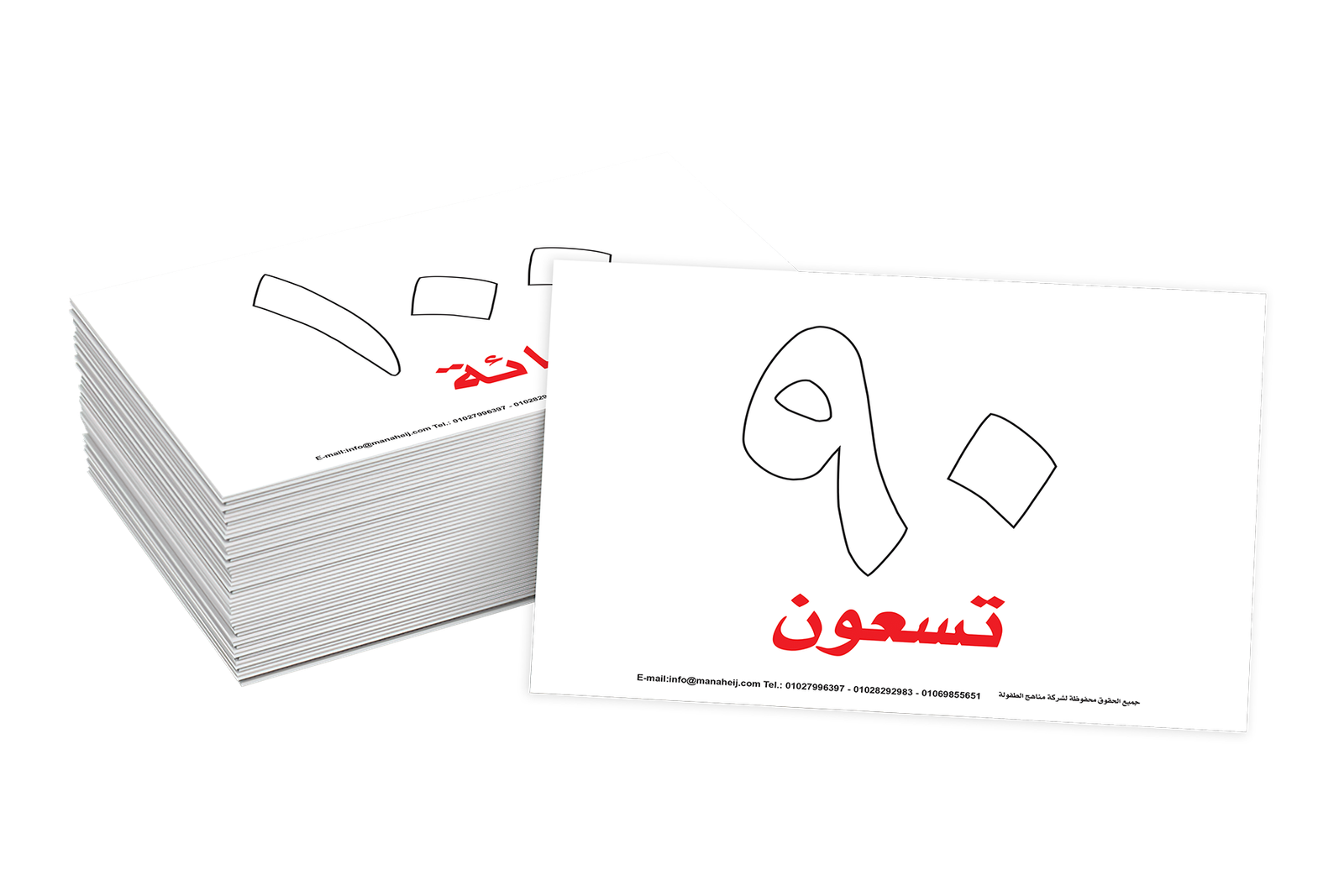 بطاقة لكل رقم يتعلم الطفل من خلالها شكل الأرقام إلى 100 ويمكن استخدامها كلعبة شيقة للأطفال بتجميع أدوات على حسب الرقم الذي ترفعه المعلمة.