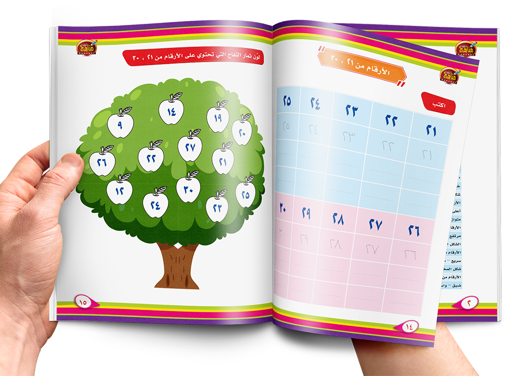 من خلال هذا الكتاب يراجع الطفل الأرقام من 1 : 20 .